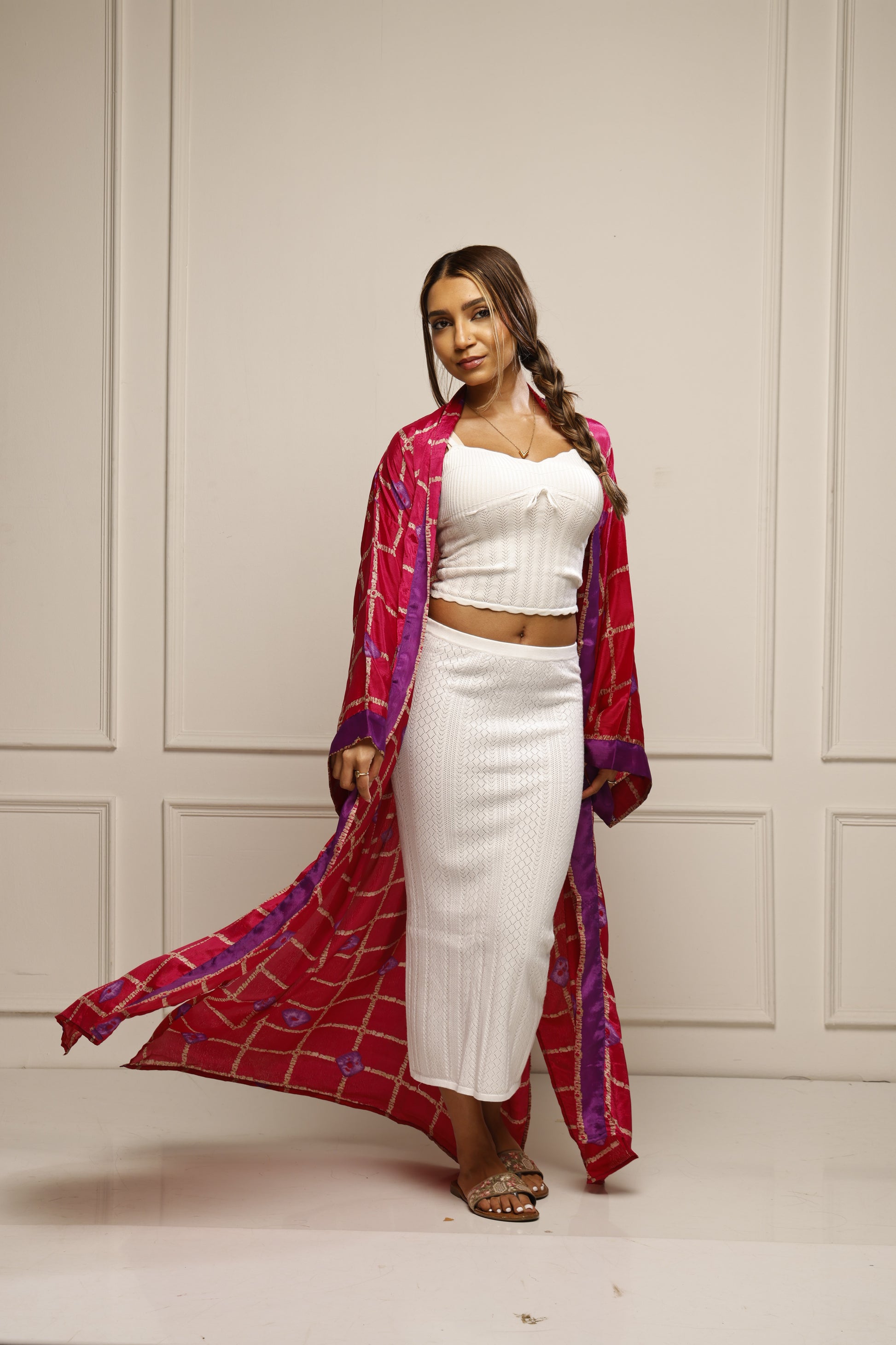 Long Saree Kimono Jacket – Effortless Layering Piece