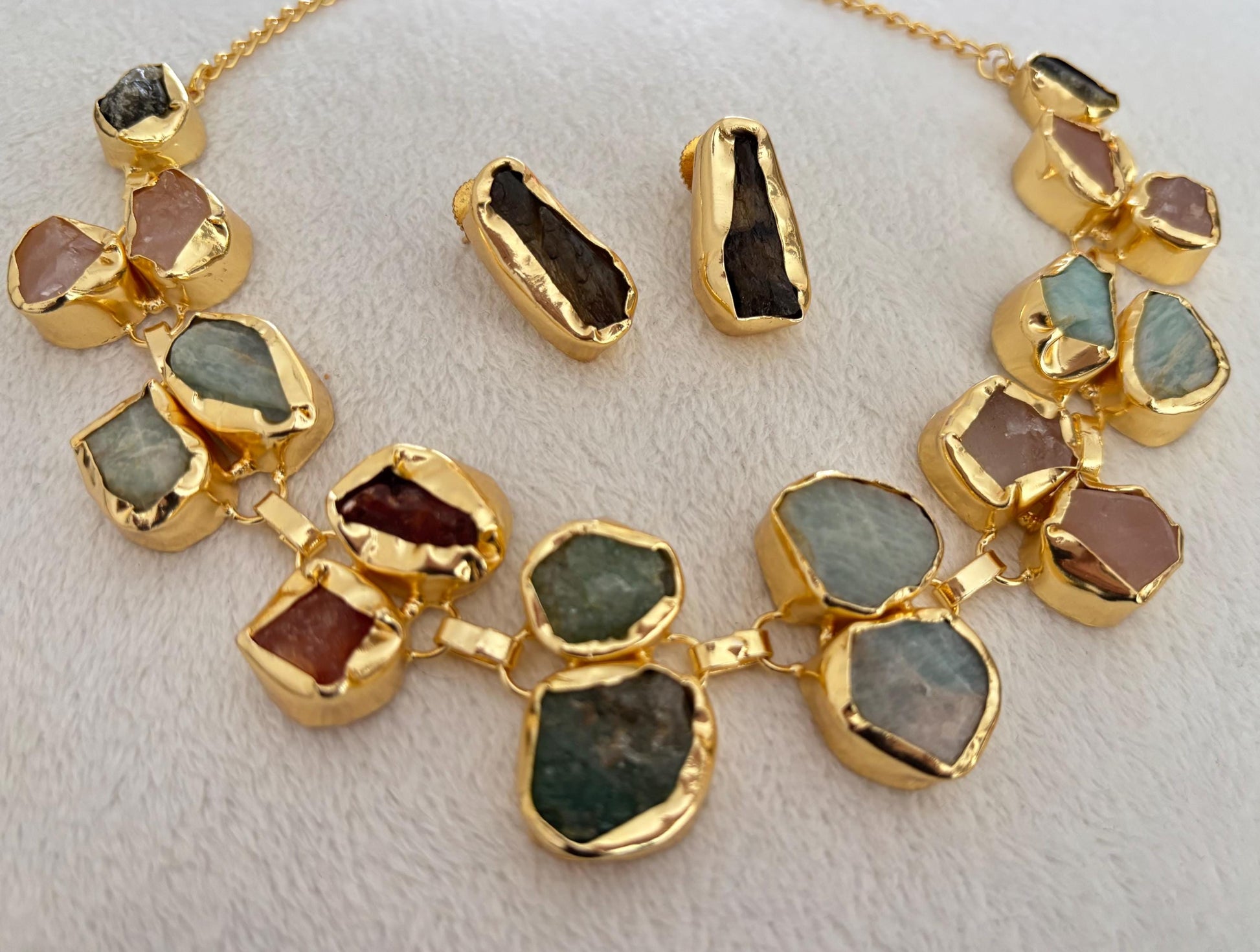 Golden Bloom Raw Stone Statement Set – 18K Gold-Plated jewellery Set.