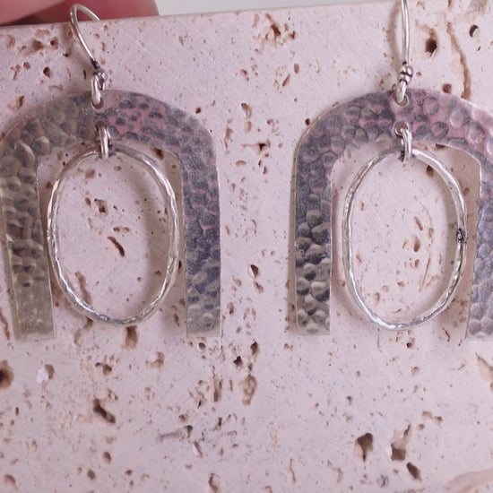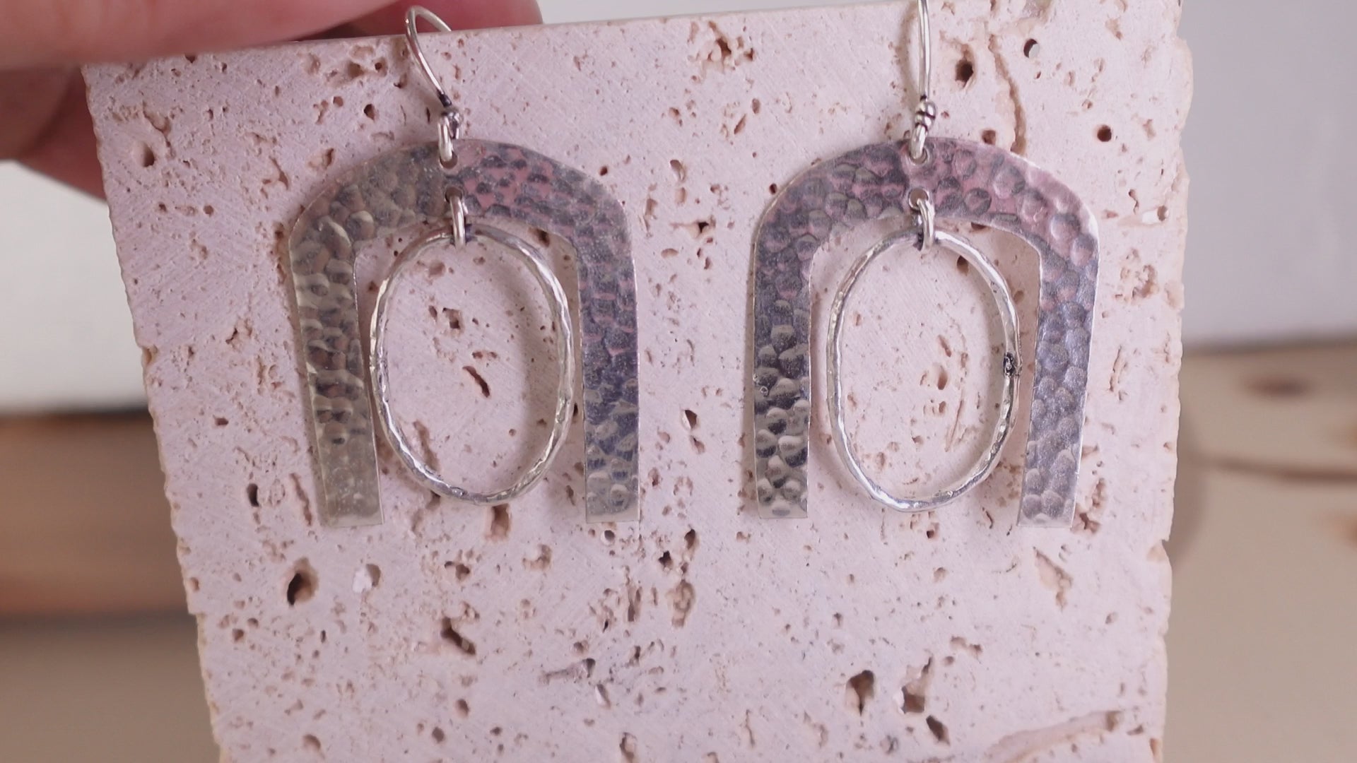 This collection of earrings is made from solid brass. The brass is hand beaten giving a unique and shimmering texture. These brass and sliver statement earrings look is bold and warm and is perfect with any outfit and occasion.