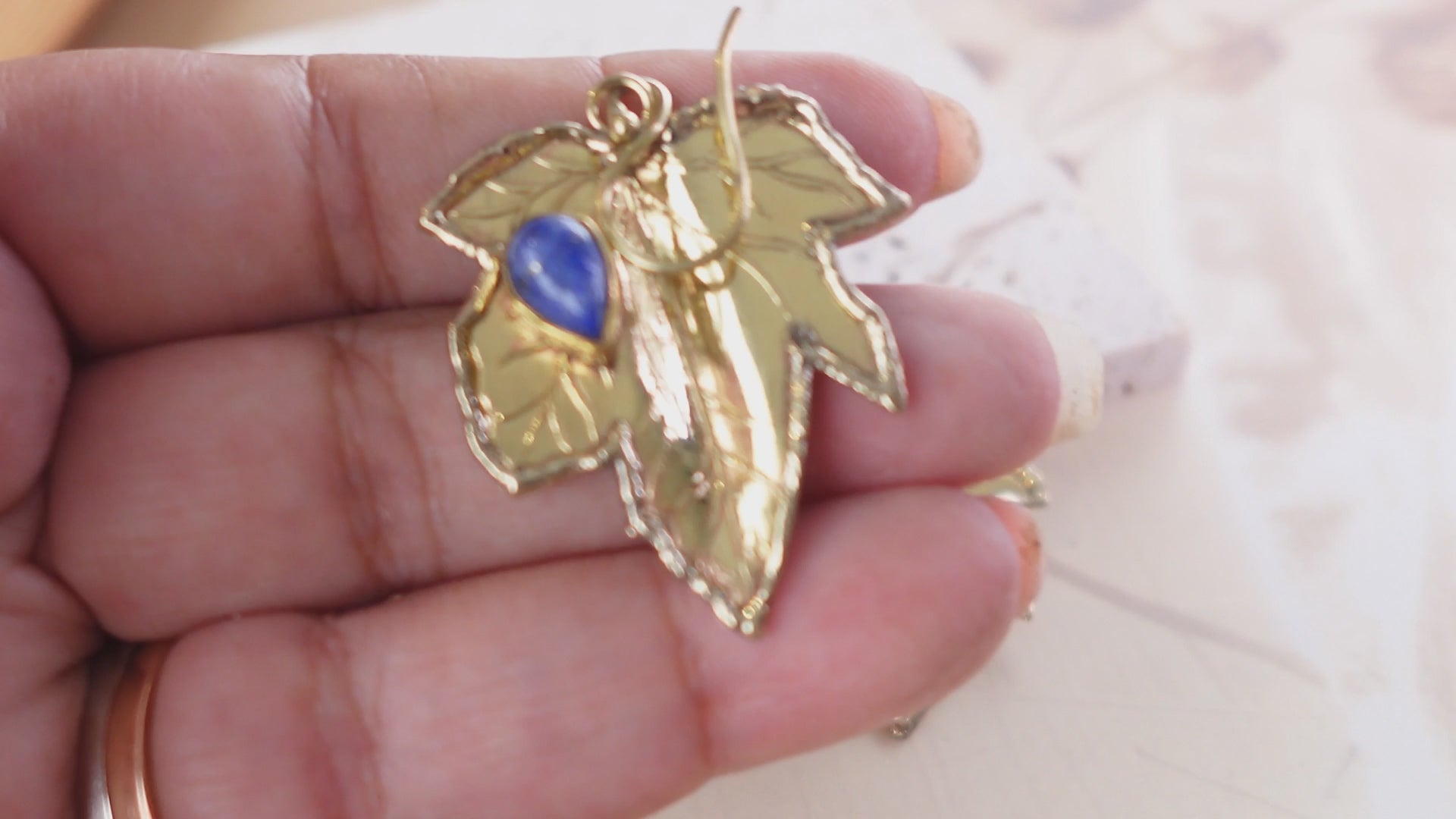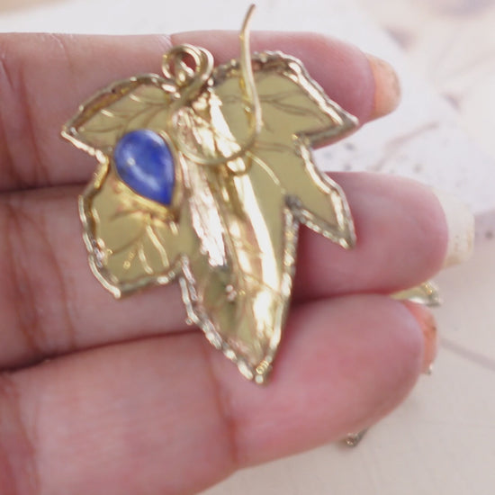 Brass Leaf Dangle Earrings - Nature-Inspired Brass Leaves with Blue Lapis/Labradorite Accents.