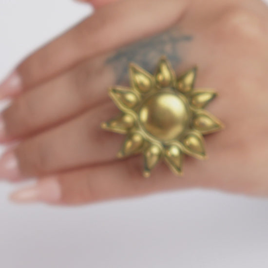 Radiant Sunburst Statement Ring – Antique Gold Finish.