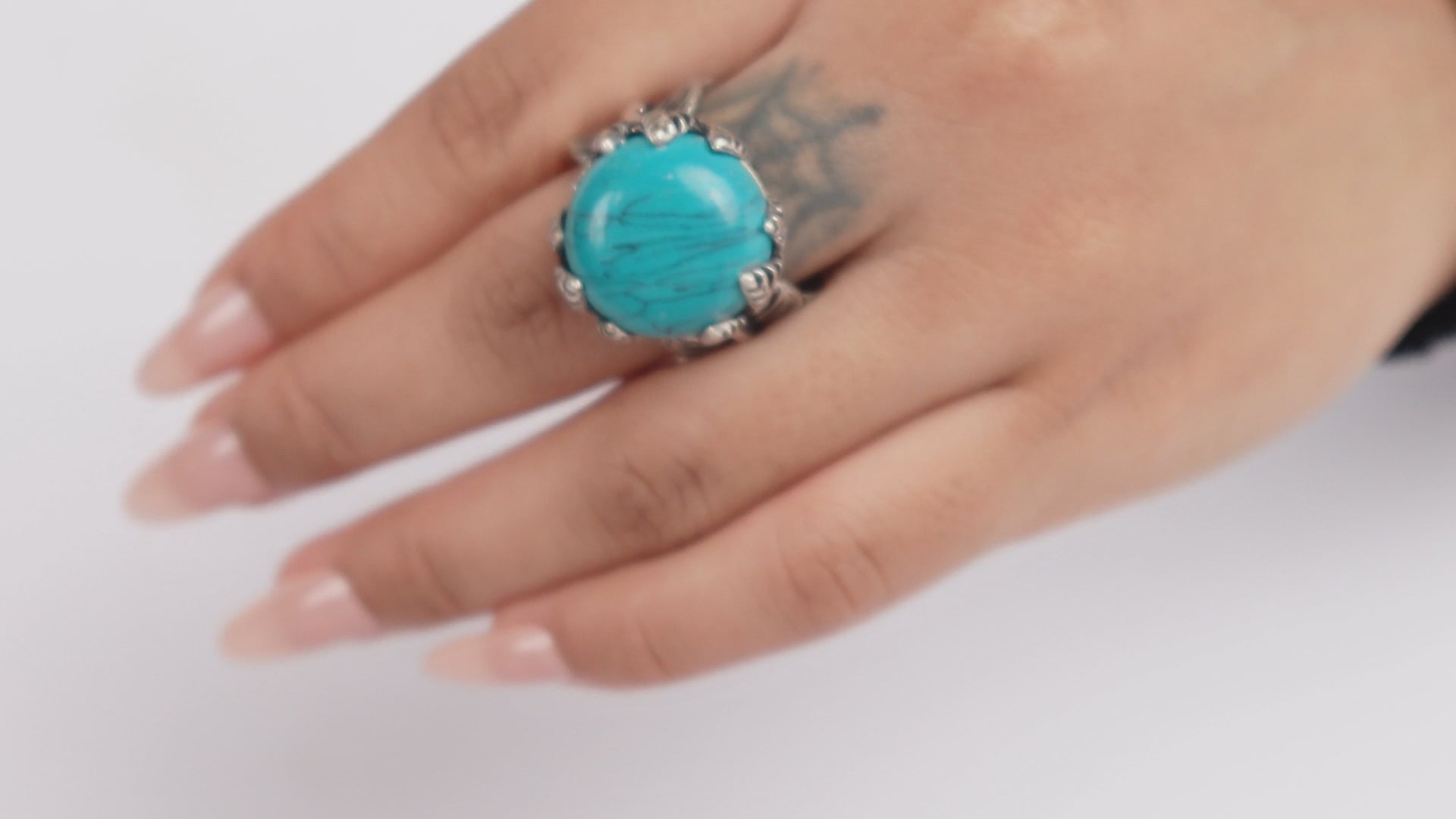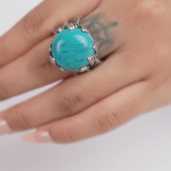 Turquoise Ring – Featuring a vivid round turquoise stone set in an ornate silver-tone frame, this piece channels earthy, bohemian vibes. Perfect for adding a bold pop of color to your everyday look or festival outfit.