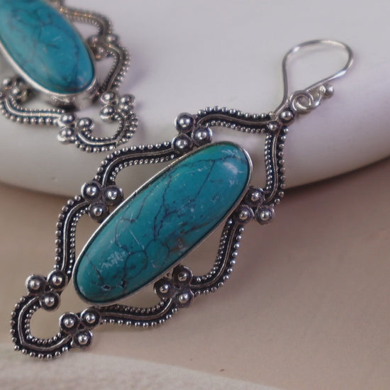 Mystic Oasis Drops Vintage Silver Earrings with Turquoise & Labradorite Accents.