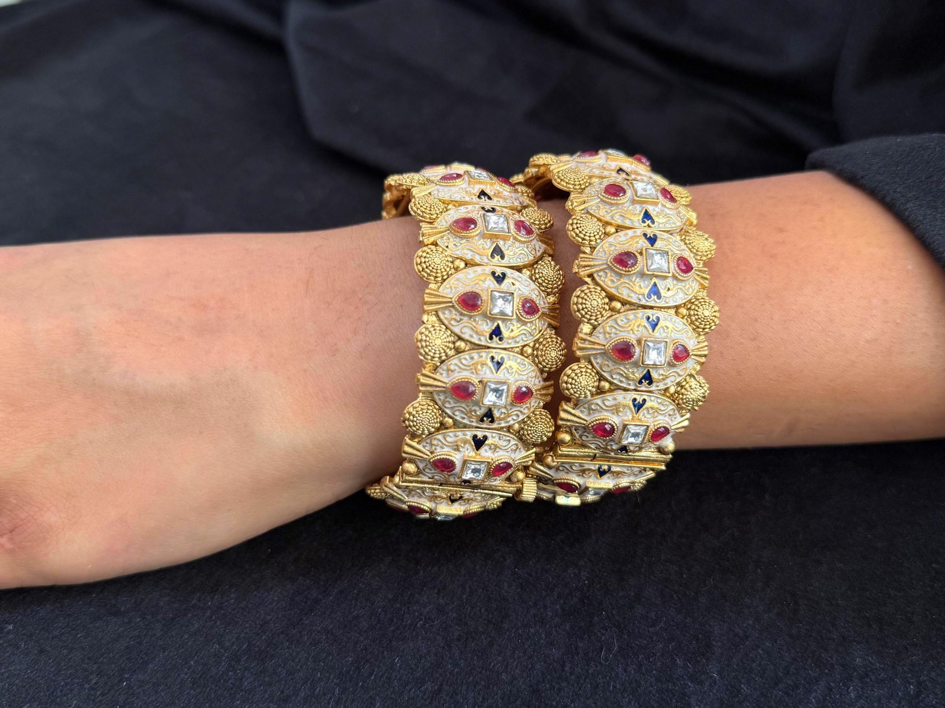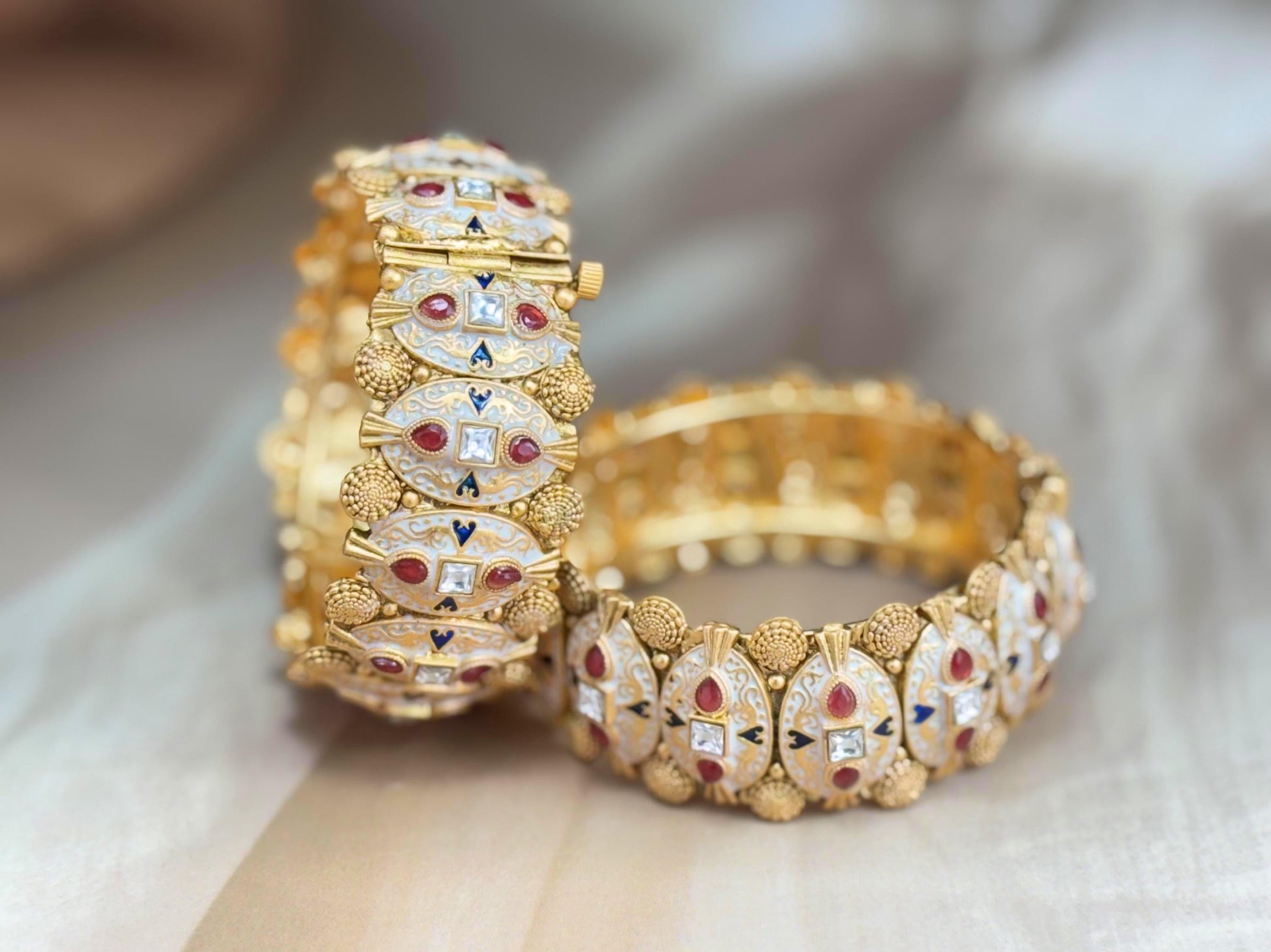 A true blend of heritage and modern charm, these gold polished bangles are crafted with the essence of Indian tradition and the elegance of timeless design. Each piece is a celebration of artistry—delicately made, yet strong and full of soul.